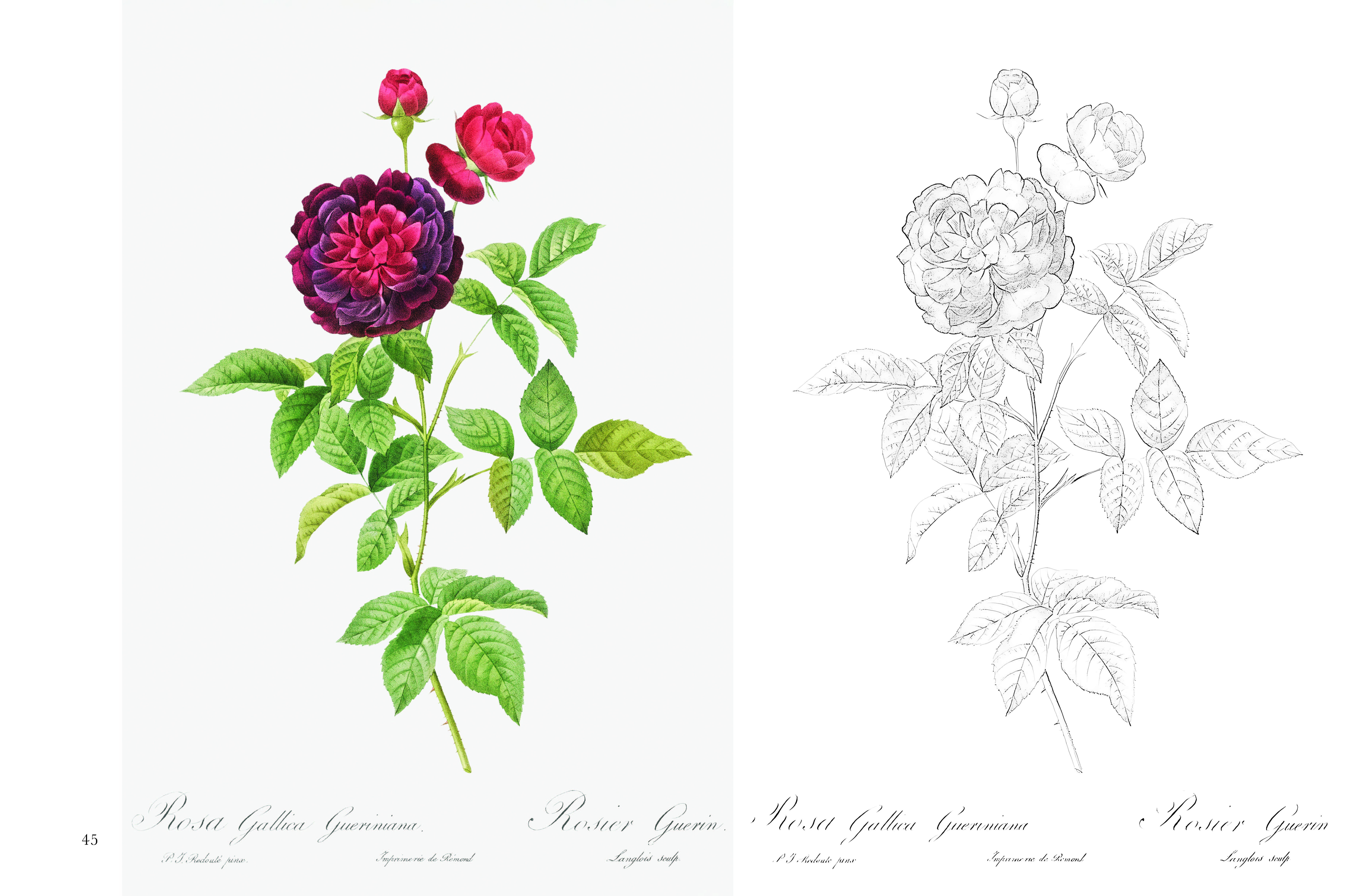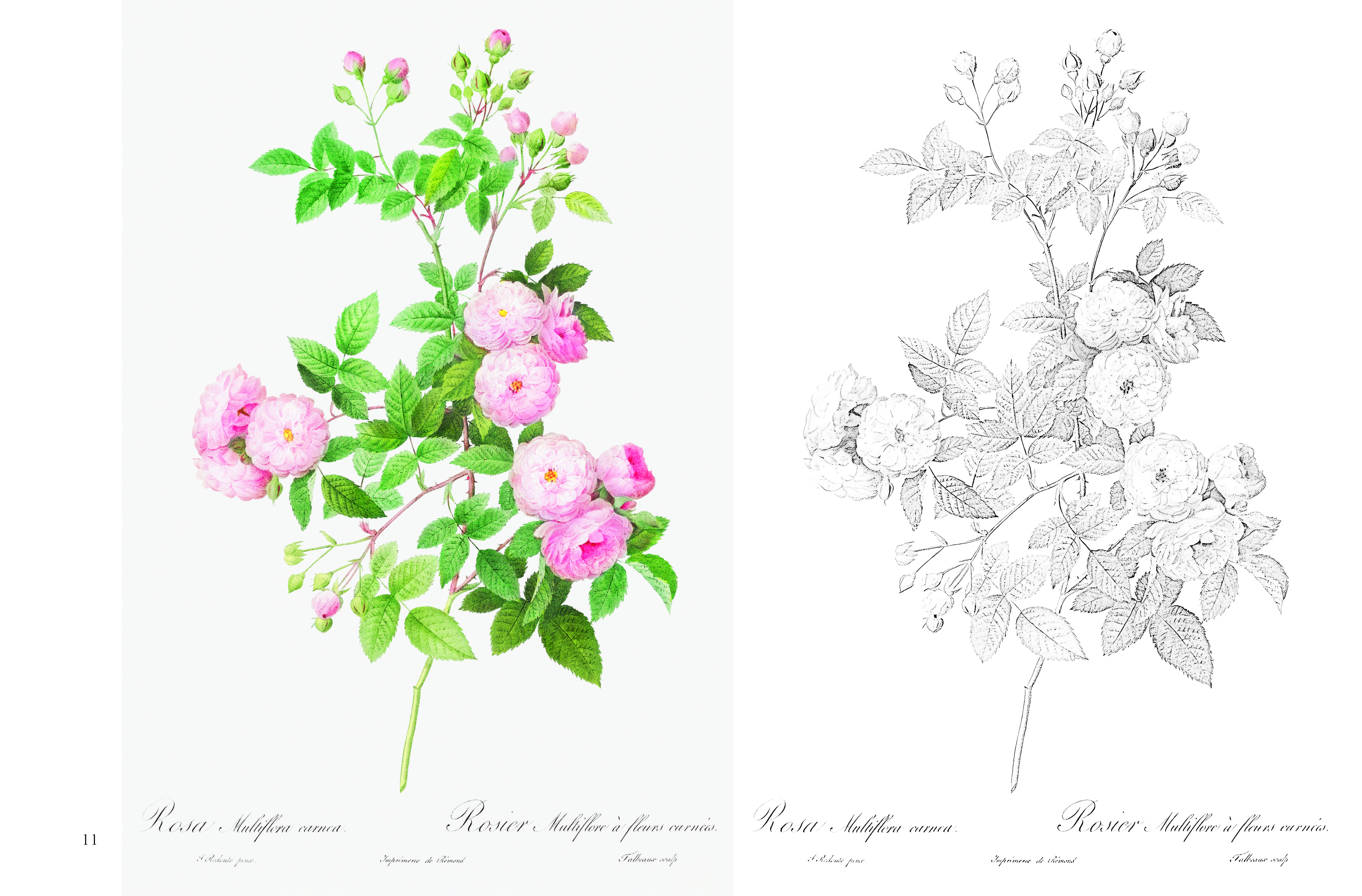 ポストカード塗り絵 ルドゥーテの美しいバラ ~ボタニカルアートの金字塔 『バラ図譜』より~