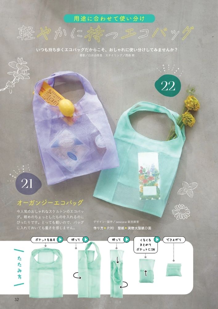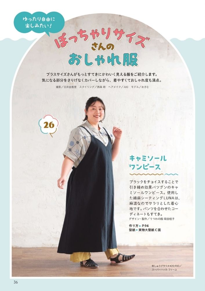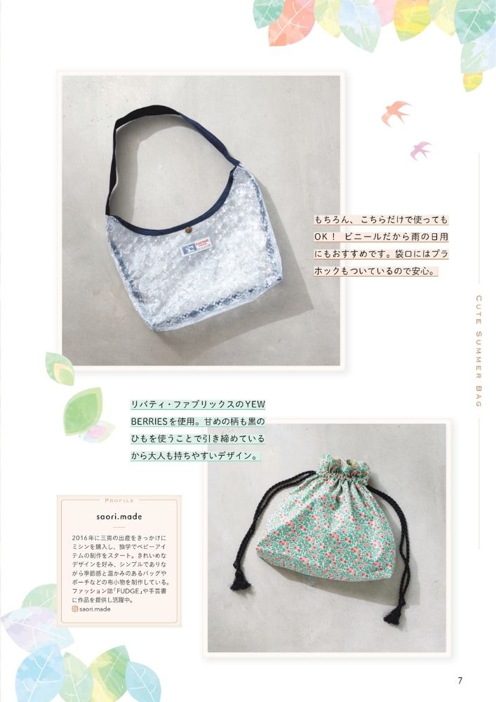巻頭特集は、「この夏使いたい!大人かわいい夏バッグ」クリア素材や巾着バッグ、柄バッグなど夏にぴったりなバッグをたっぷり紹介。「2m・3mで作れちゃう、夏のまいにち服」「ぽっちゃりサイズさんのおしゃれ服」「エコバッグ」など盛りだくさんの内容。実物大型紙2枚つき。