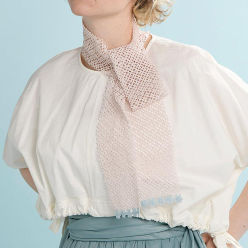 ロングタイプのレースタイは、強すぎないバイカラーのコントラストでシックに仕上げました。顔色がきれいに見える肌なじみの良い色を選んで。ひと巻きできる長さのレースタイは、首まわりのアクセサリーとして使える効かせ色で。バイカラーの組み合わせはお好みで変えて楽しめます。