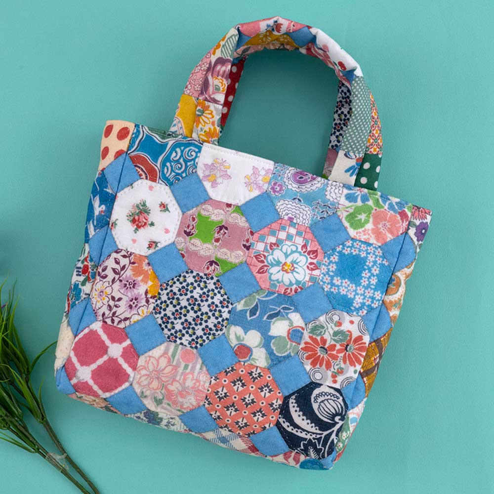 100種類以上のフィードサックをオクタゴンのパターンでつなげた作品を、そのままプリントした布です。オクタゴンは1辺約2.2cm。そのままでも、キルティングだけしても素敵な作品に仕上がります。