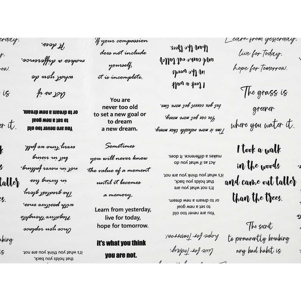 英語の元気が出るフレーズや格言などをいろいろなフォントで散りばめたおしゃれなプリント。バッグやピースワークなどにも使える使い勝手のいいデザインです。