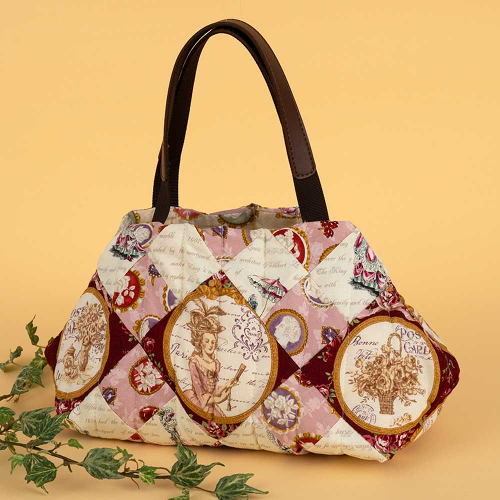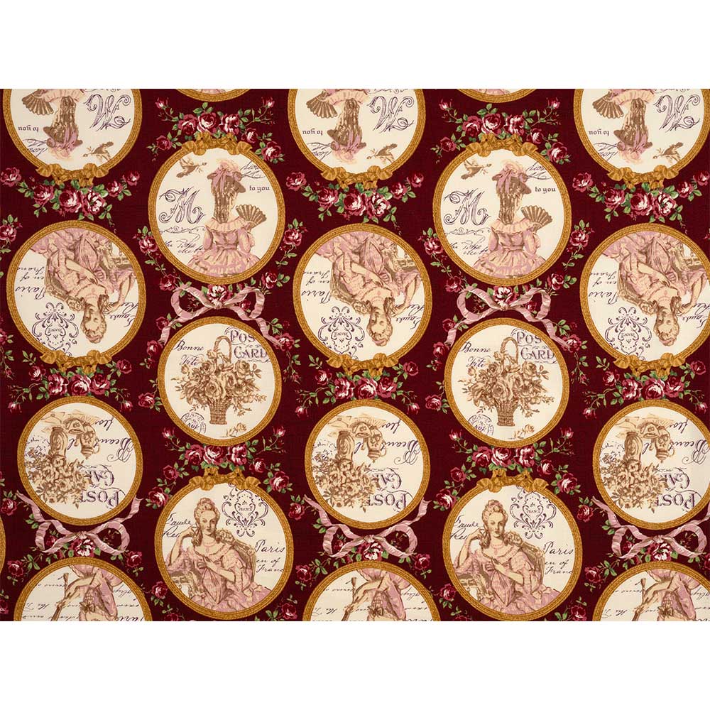 貴婦人やクラシカルなフラワーモチーフを描いた直径約9~10cmのオーナメントを並べた、インパクトのあるデザイン。バッグやインテリア、モチーフを切り取って使っても。