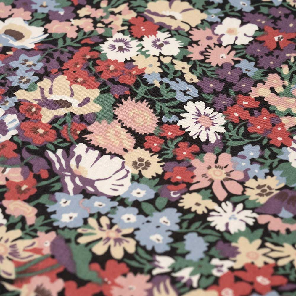 【限定80】【キット作り方つき】シックなリバティ・ファブリックスで作るバック。黒地の花柄をサイドの無地のブラックが引き立てる、コンパクトサイズです。