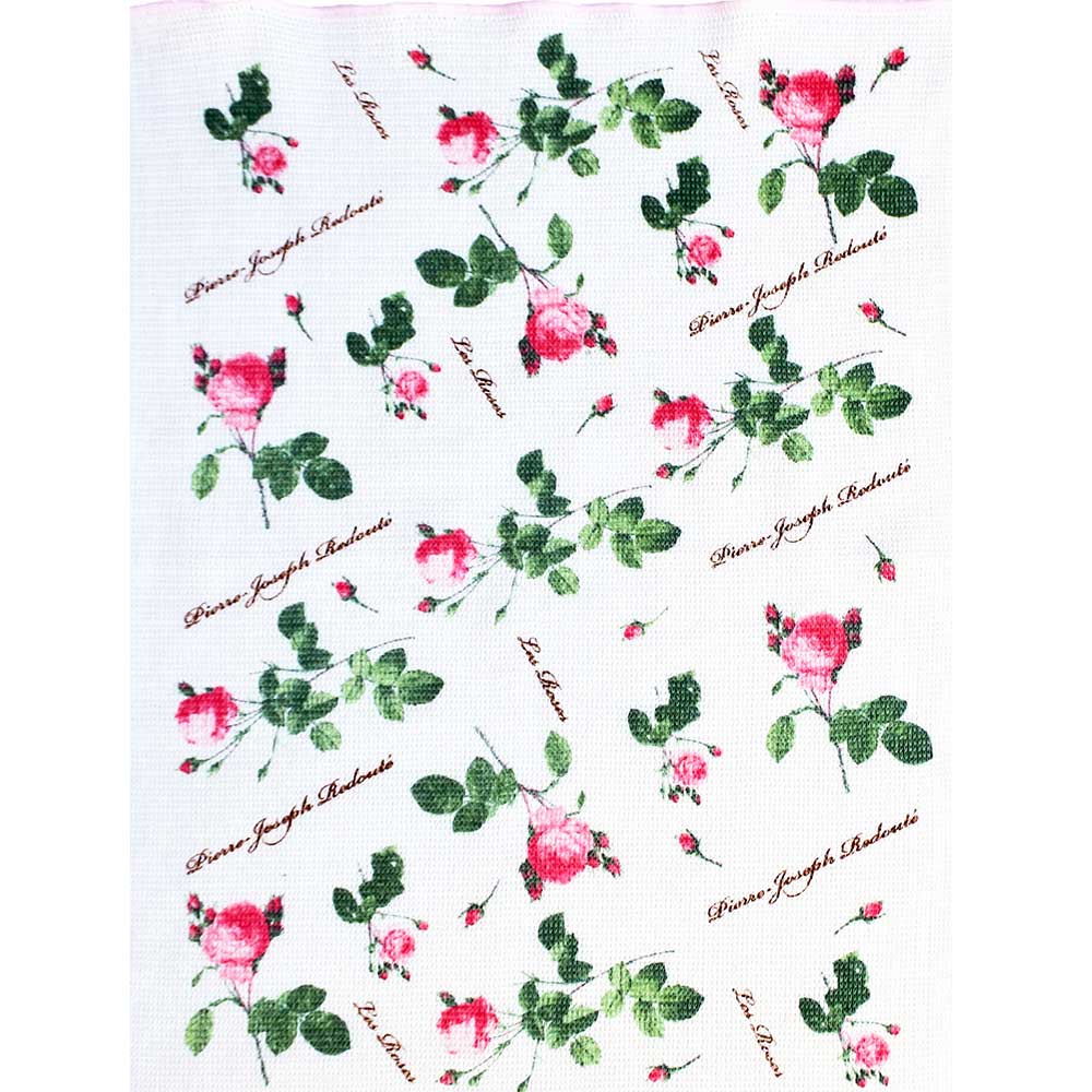 【完成品】「バラ図譜」の作品をプリントしたクロスを2枚セットでお届け。欧米への輸出用として戦後から作られ、今も愛されるイノダ織のニットふきんです。吸水性が高く速乾性にも優れています