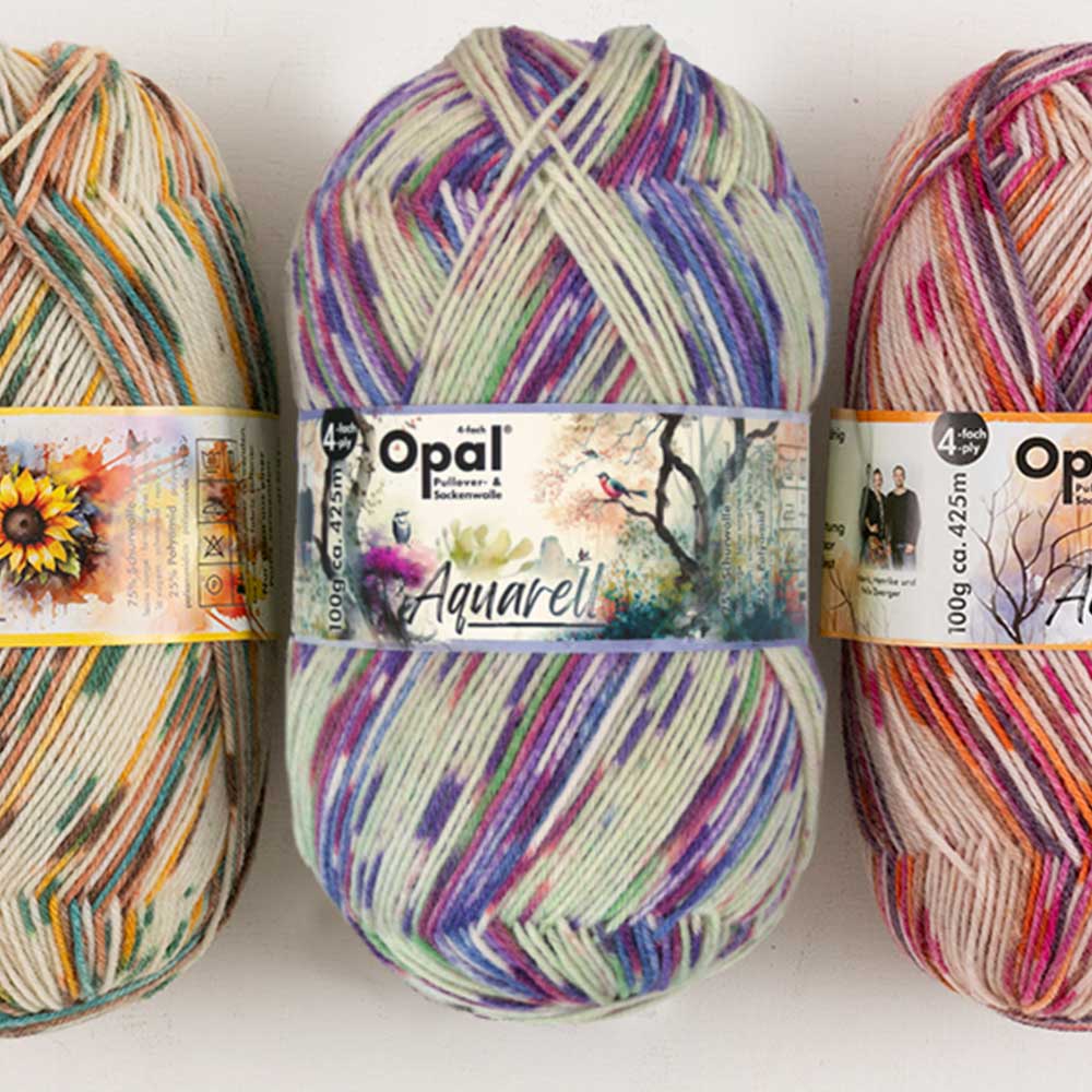 ドイツ発人気ソックヤーン・オパール糸。「アクアレルー(水彩画)」というシリーズで淡い色合いが新鮮。自然のタイトルがついて、コレクションしたくなります。1玉で編める靴下のレシピつき。