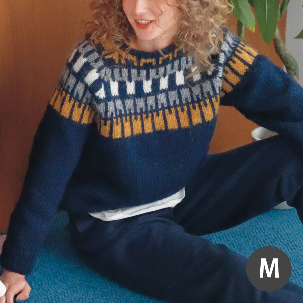 〈糸セット〉紺の編み込みラグランプルオーバー M