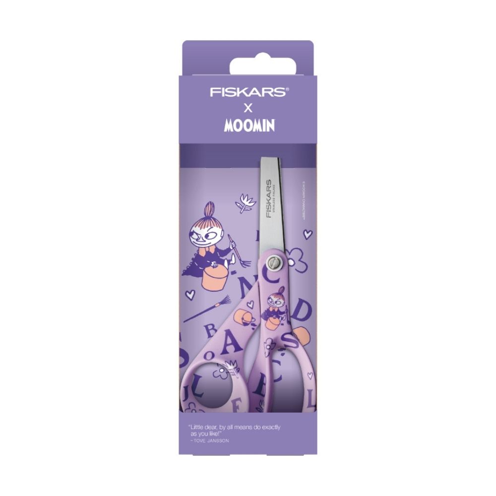 フィンランドを代表するブランド「フィスカース」と、人気のテーブルウェアブランド「アラビア」のムーミンデザインが融合した、Made in フィンランドのハサミ。リトルミイとアルファベットモチーフがデザインされた、淡いパープルカラーです。