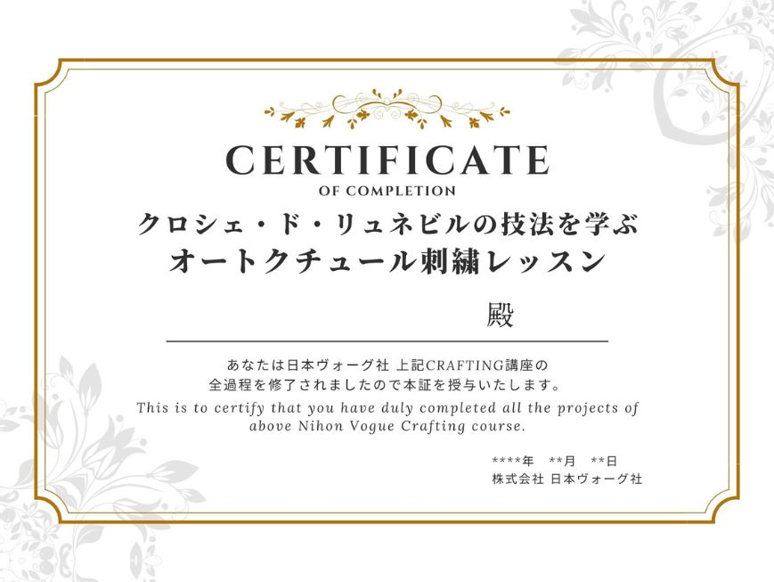 すべてのレッスンを修了後、メールから「提出作品」の写真をご提出いただくと、 フィロザ美南先生の講評コメントとともに、修了証(PDF)を発行いたします。