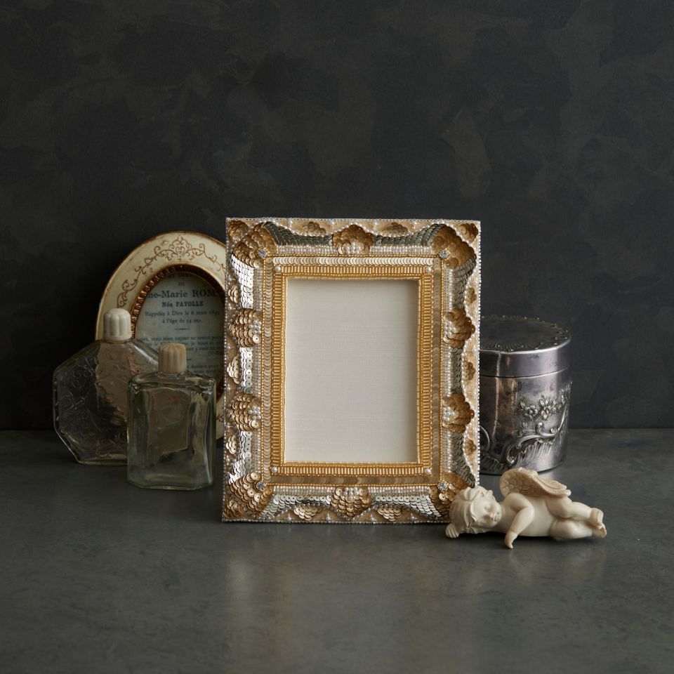 完成サイズ:約16×13.5cmたくさんのスパンコールを刺し並べて制作するフォトフレーム。ビーズで面を埋める「ポワンティレ」、チェーンステッチで面を埋める「ランプリサージュ」、角を綺麗に再現するテクニック、スパンコールを立体的に差し並べるテクニックなどの技法を学び、最後はフォトフレームに仕上げるカルトナージュのテクニックまで、詳しく動画で解説しています。
