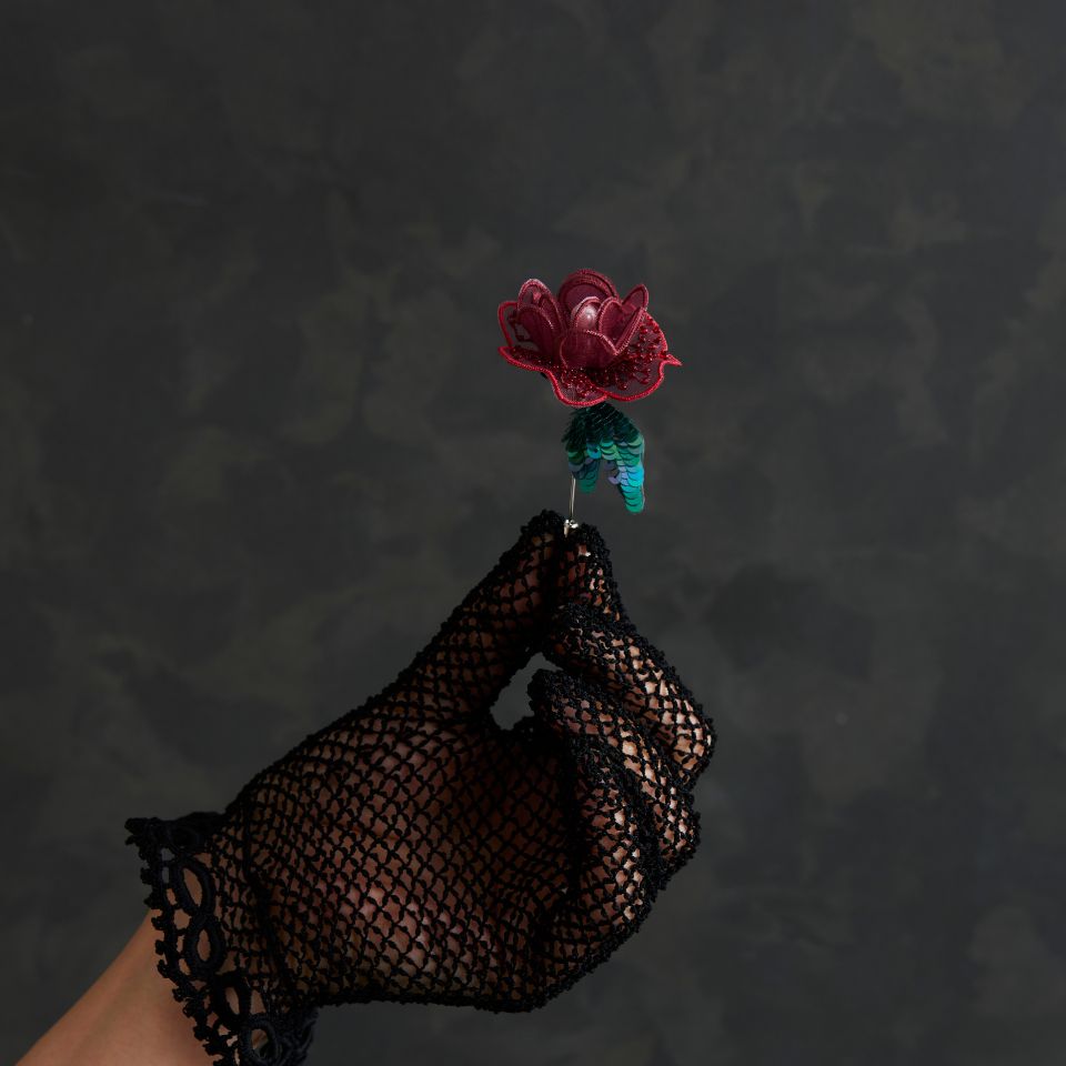 完成サイズ:約 縦7×幅4.3cm(葉含まず)ワイヤーを使って花びらや葉を形作るお花のハットピン。ワイヤーをオーガンジーに縫いとめる「ポワンリッシュ」の技法や、小さなステッチで花びらの模様を描くテクニックを学びます。完成した花びらと葉をハットピンに仕上げる貴重な方法をご紹介します。