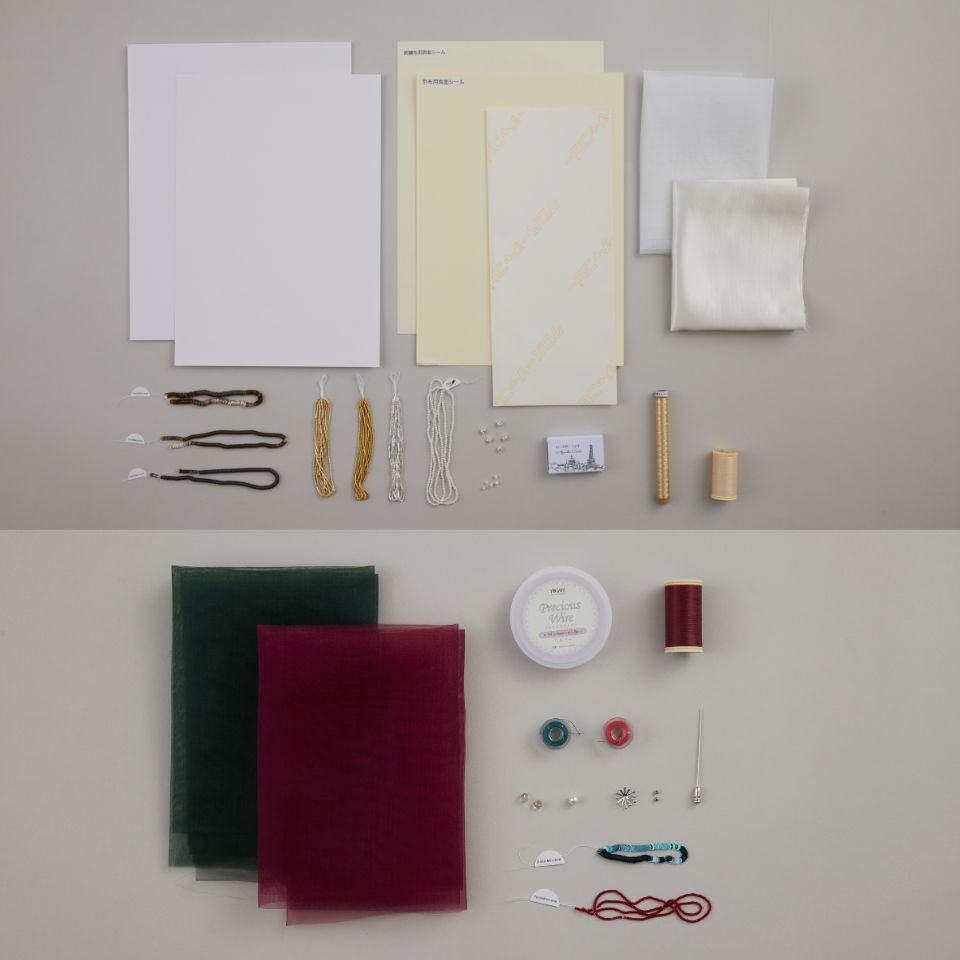 レッスンに必要な「リュネビル刺繍用クロシェ #80」と「オートクチュール刺繍におすすめ スタンド刺しゅう枠セット」はオプションにて別途お買い求めください。