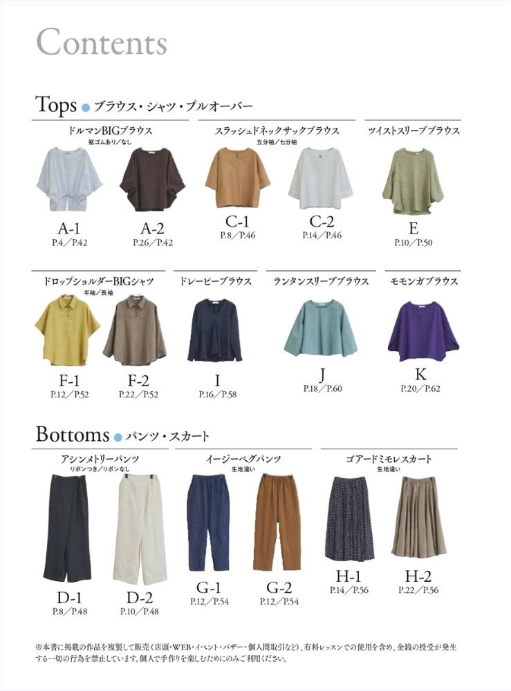 アパレルパターン専門店aviver(アヴィヴェ)のお洋服が作れる作品集。ソーイング初心者を含むミセス層を対象に、簡単に作れて、日常で活躍する大人服を紹介します。見た目はシンプルで洗練されたシルエット、デザインはちょっとした切り替え位置のラインにもこだわり抜いた、パタンナーならではの技が詰まっています。ブラウス、ワンピース、チュニック、パンツ、スカート、カーデなど、丈違いや生地違いのアレンジを含めて計29点を掲載。付録:S・M・L・2L・3L・4L(6サイズ)の実物大型紙つき
