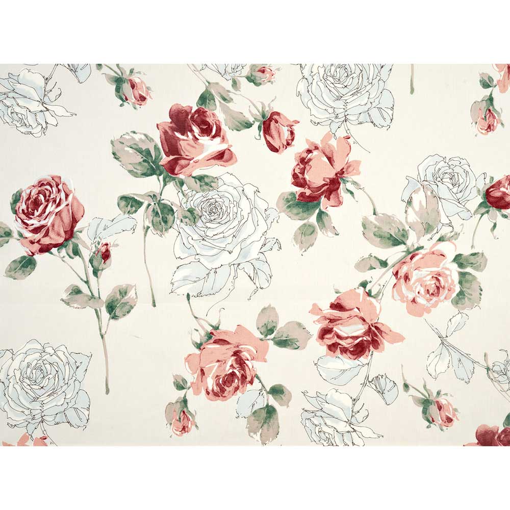 [ローン]薄手のローン地に、水彩画風のバラを繊細に描いた、大柄布です。ワンピースやスカートなどにも。絵柄を切り取って 使っても。