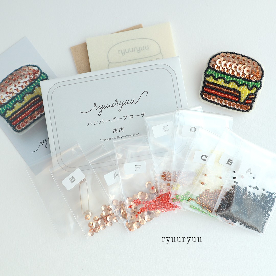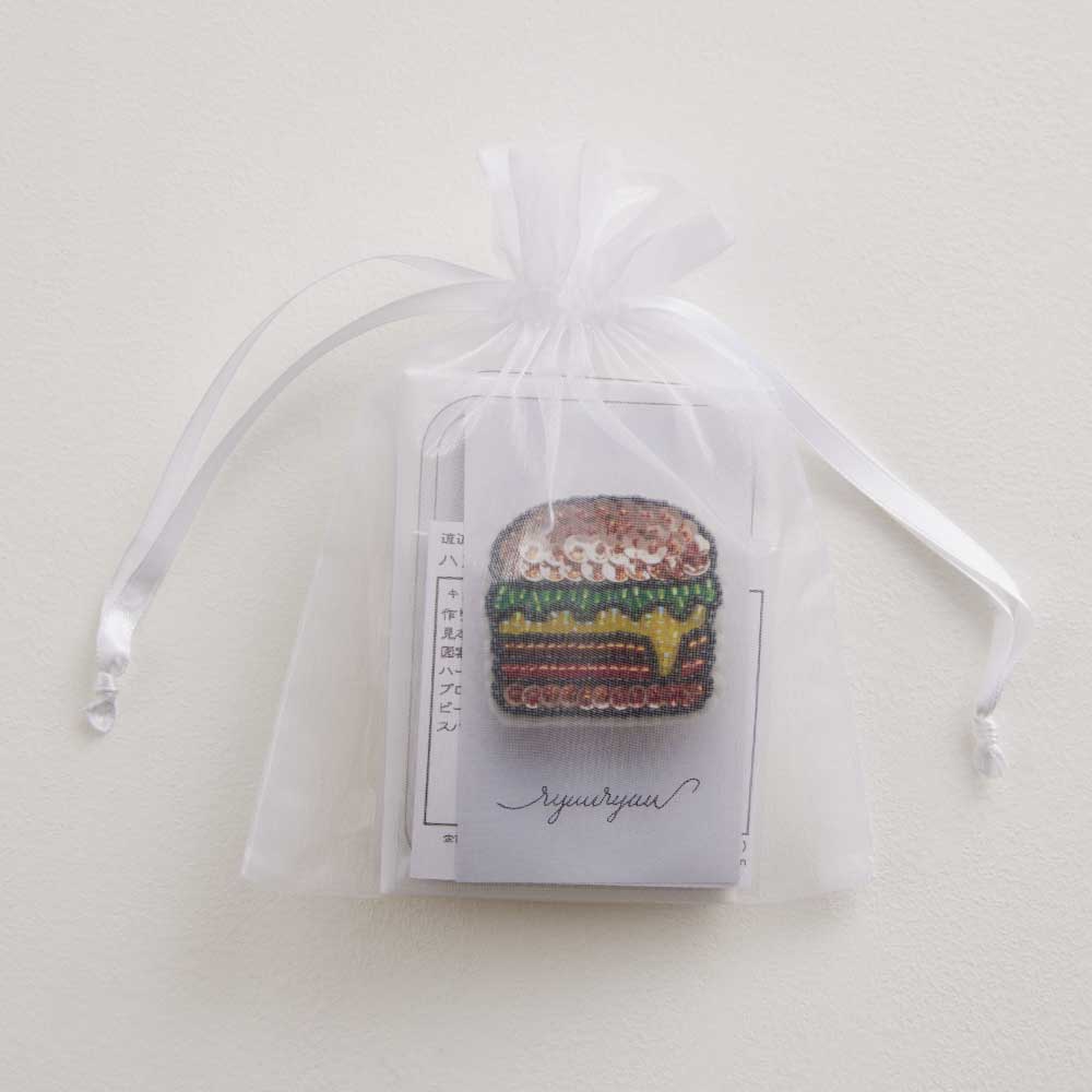ビーズ刺しゅうで美味しそうなハンバーガーのブローチが作れるキッです。