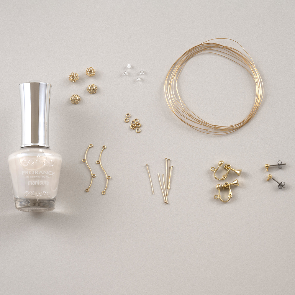 初めての方でも楽しめるようにアクセサリーに仕立てるための金具はすべてセット!