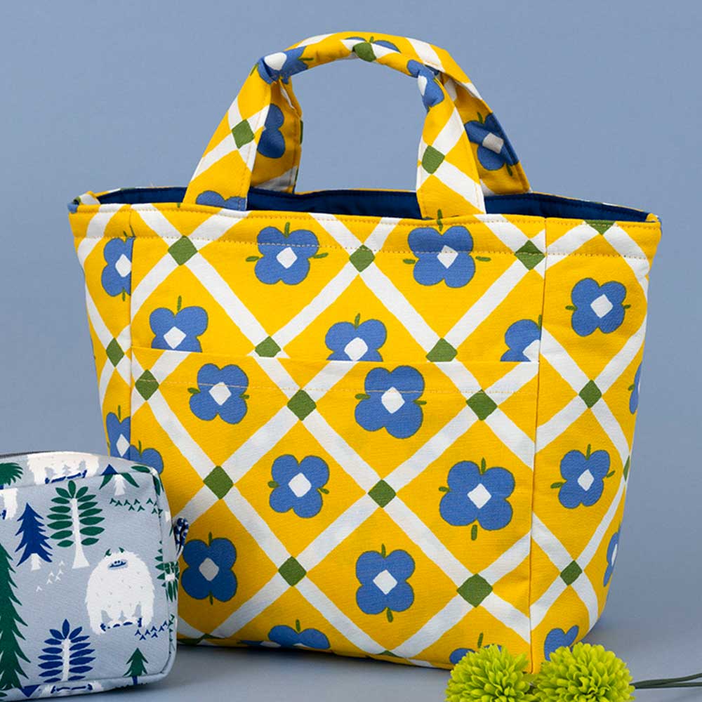 [オックス] ロッタは市民農園のこと。フィンランドの首都ヘルシンキで盛んな園芸や菜園の世界を、少しレトロな雰囲気も漂う花柄プリント布に仕上げました。