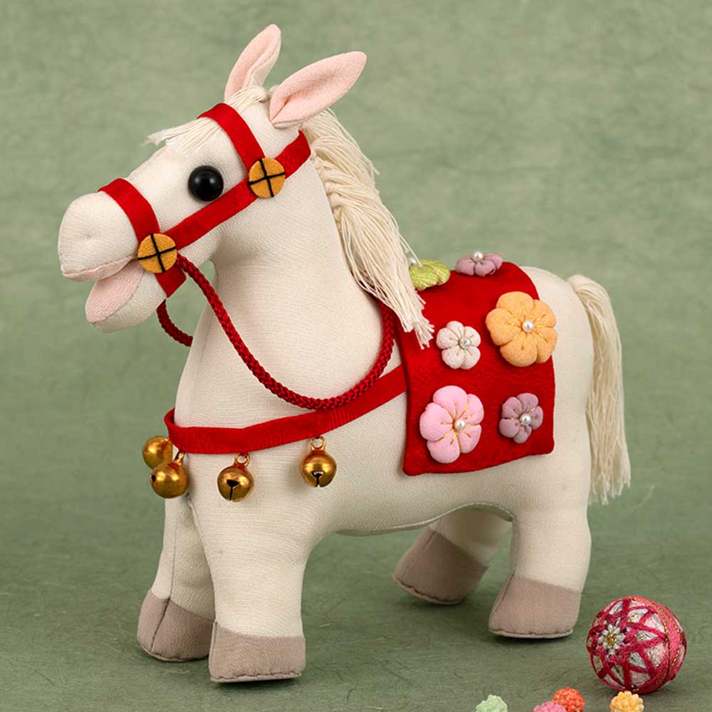 【キット作り方つき】【古裂】お正月の招福・干支飾りとして、また端午の節句を祝う飾りとして、成功や成長を願う馬の置物。ぱっちりした目や開いた口が可愛らしいデザインです。