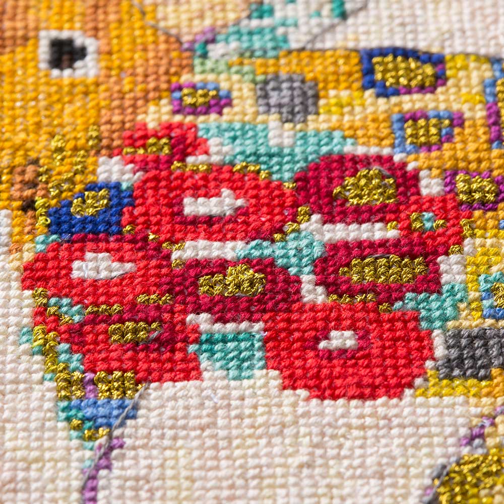 【キット作り方つき】 オーストリアの画家、グスタフ・クリムトの金箔を使用した黄金絵画を、キラキラ輝くDMCエトワールを一部使用し、クロスステッチで繊細に表現しました。よりリアルにクリムトの世界を楽しめます。上級の方向き。