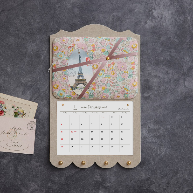 2026年版。ペルメルがついた、おしゃれな壁掛けカレンダー。