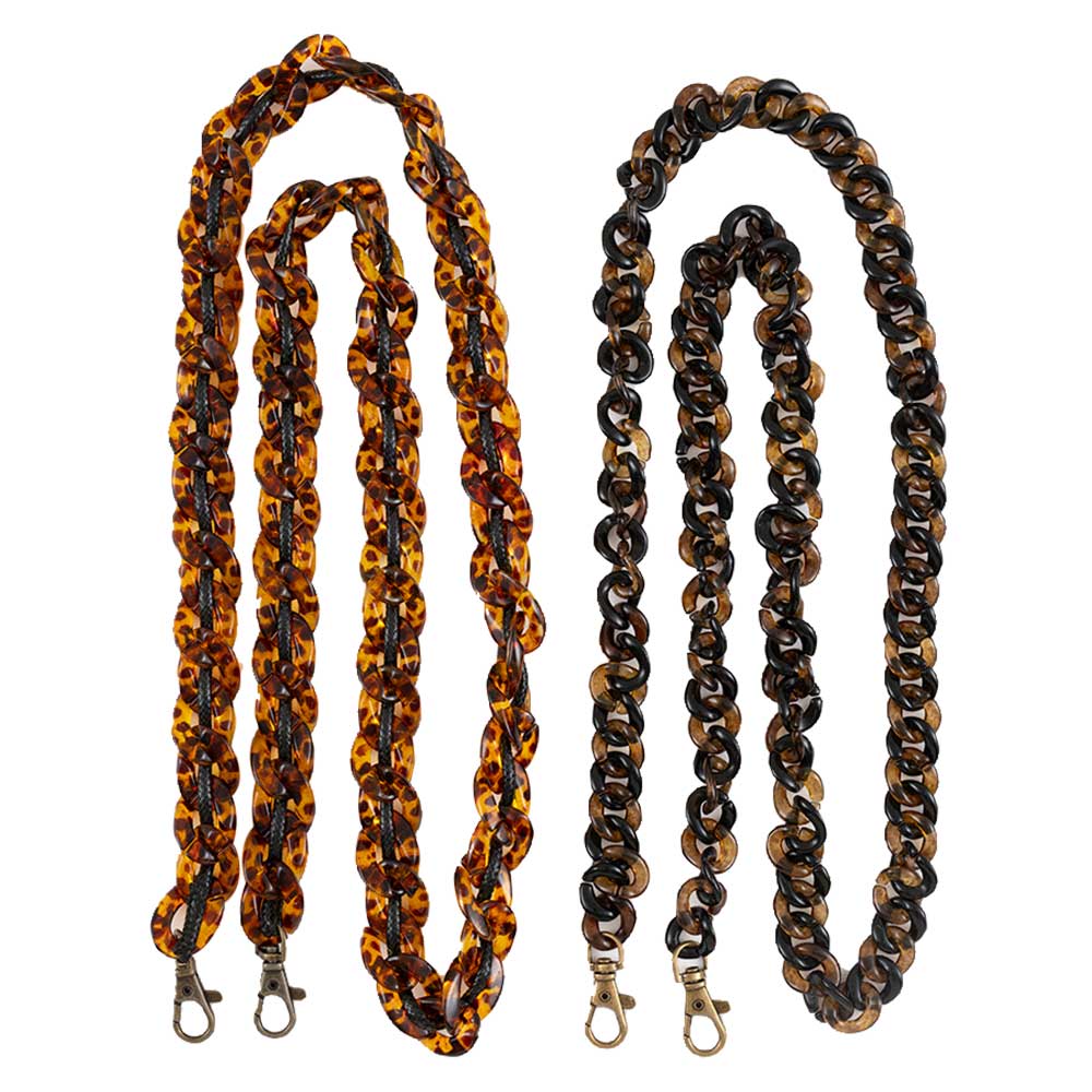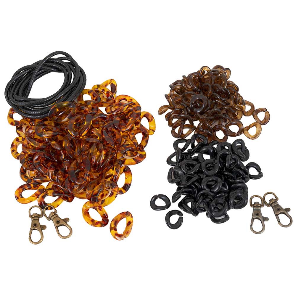 【キット作り方つき】好みの長さのショルダーひもが2本作れる、プラスチックパーツなどのセットです。琥珀色パーツで作るひもは、ワックスコードを通して丈夫に仕立てます。