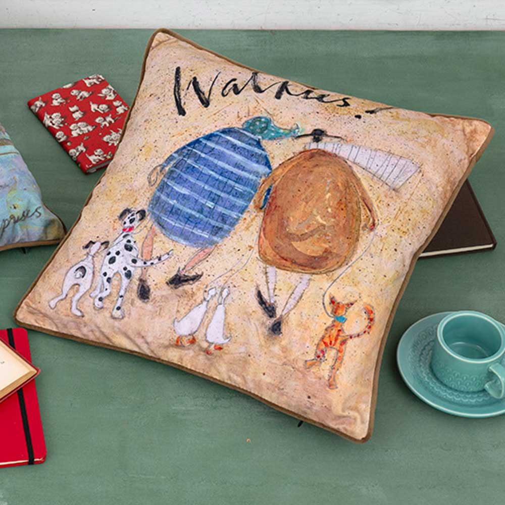 【完成品】心温まる不思議な世界観が大人気。イギリスの画家、サム・トフトのアート作品がクッションカバーになりました。色調の異なる2 種をご用意。ファスナーで出し入れします。