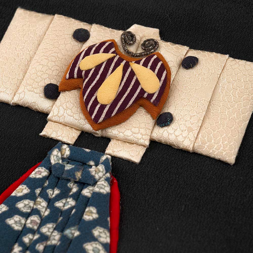 【キット作り方つき】【古裂】日本が誇る伝統芸能・お能の装束を押し絵でデザインしました。本物のような面のひげはたこ糸で仕立てます。