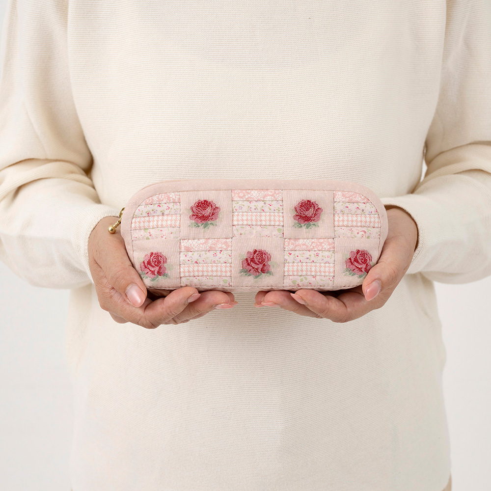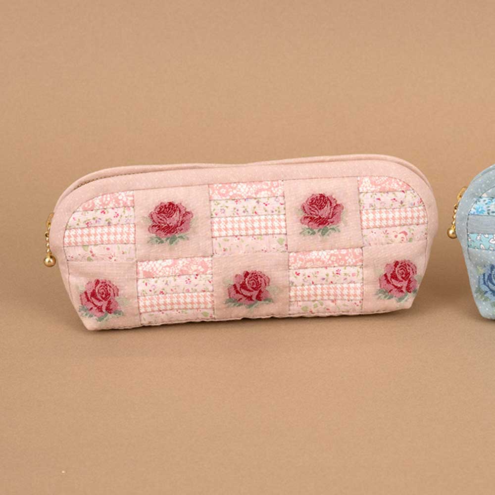 【作り方つき】上質感のある、可愛いバラ模様の刺しゅう布のピースワークで仕立てるペンケースです。2色をご用意しました。後ろも同じデザイン。