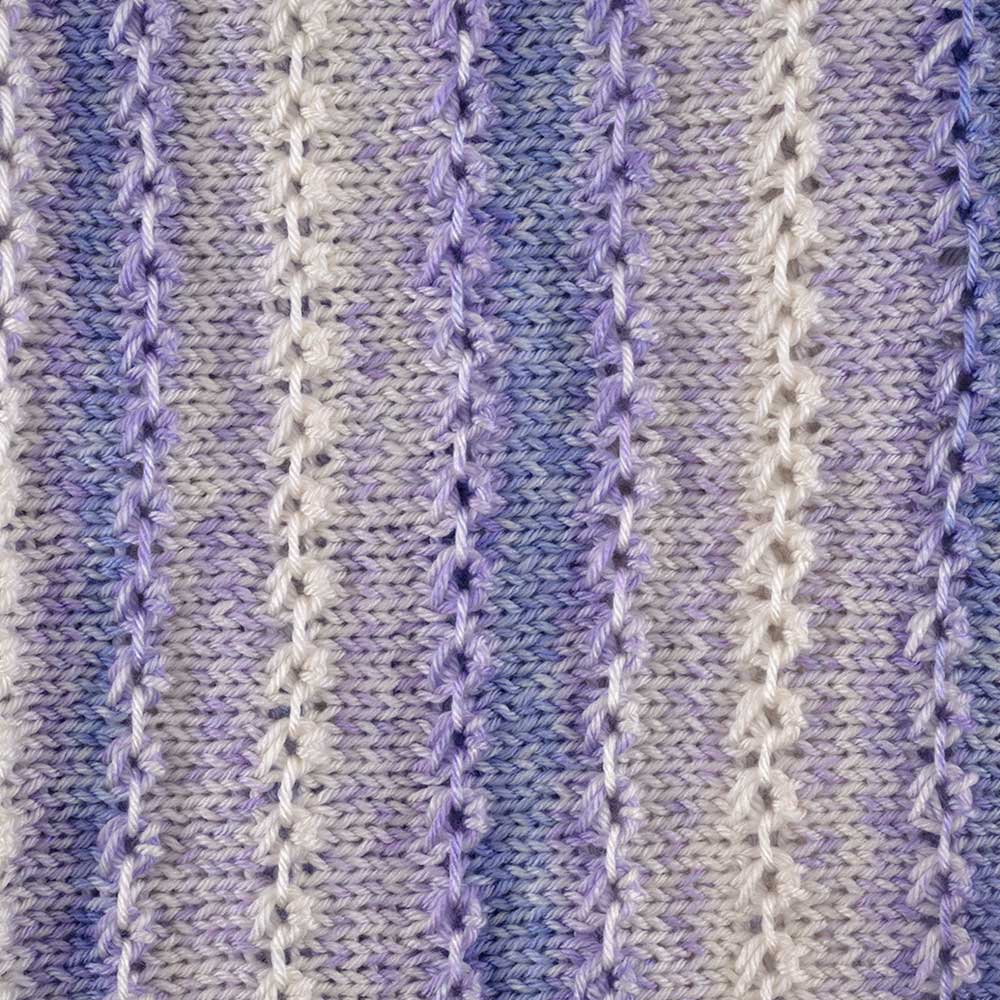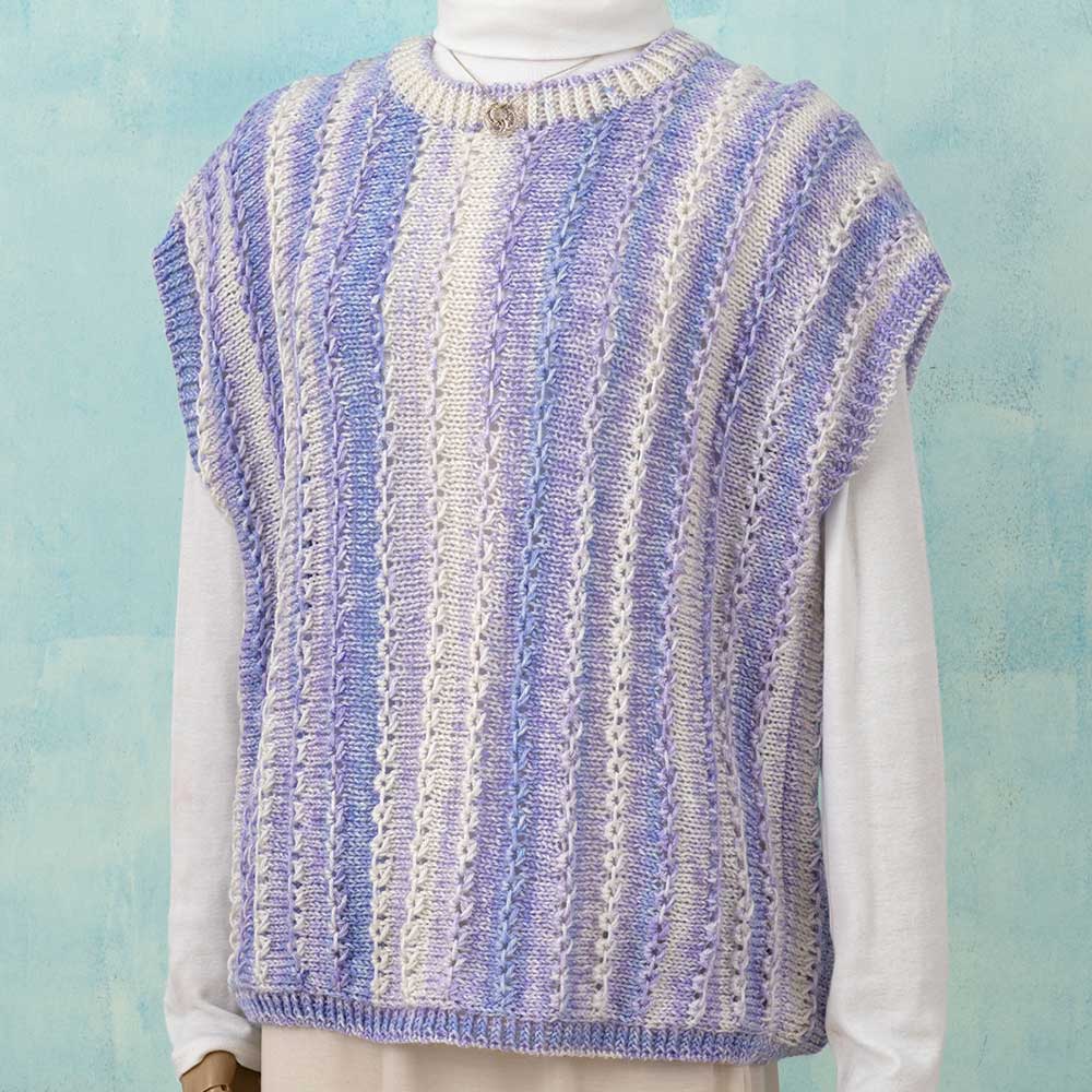 【キット作り方つき】ストライプのような模様になる段染め糸でドライブ編みし、表情豊かな編み地に仕上げるベストです。ゲージが取れる中級以上の方にお勧めします。