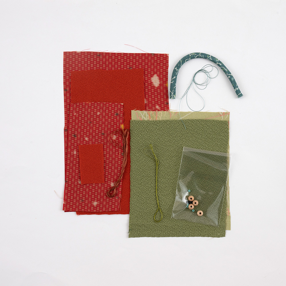 本体布(古裂)、ビーズ、古裂ひも、糸