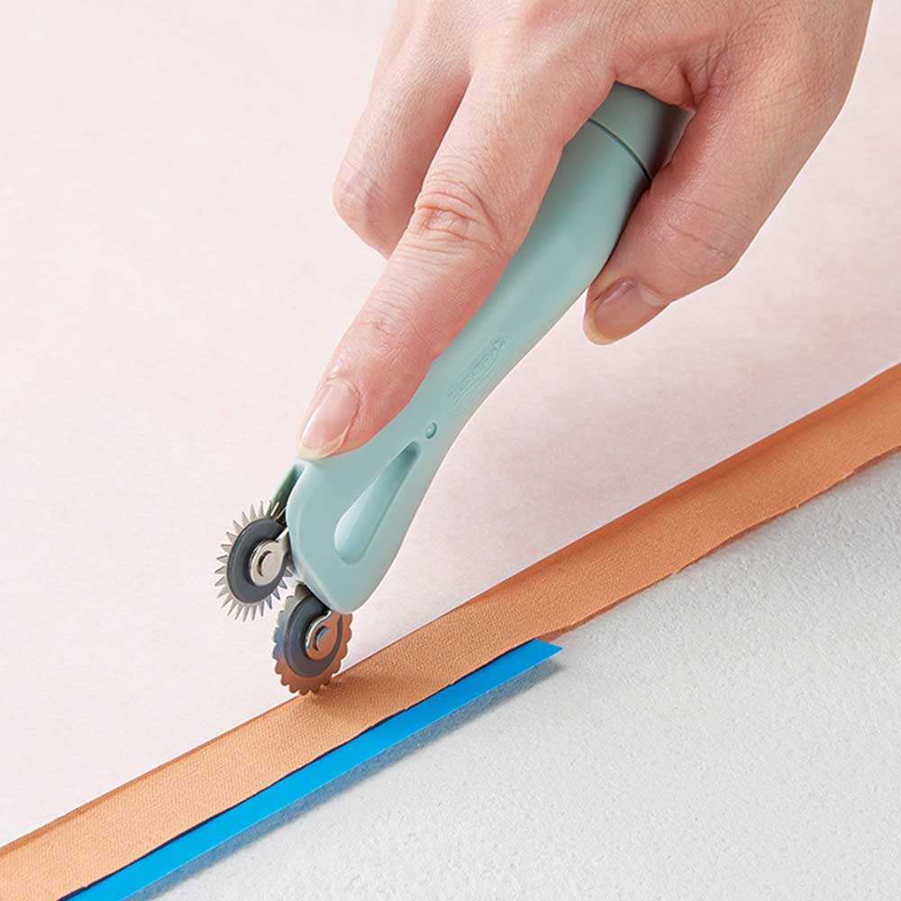 【NEW】パターンから生地に直接印をつけられる〈ギザ歯〉、手芸用複写紙を使った印つけに向いている〈ソフト(丸歯)〉、細いラインがつけられる〈へら〉。様々な用途に活躍する3タイプの歯がセットになった、便利なルレットです。