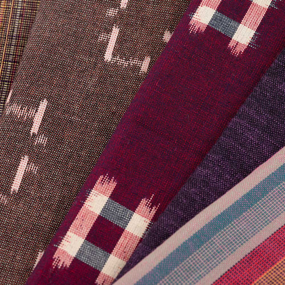 長さ各50cm分をカットした、通常の計り売りより少しお得なセット2種です。ベースやピースワーク用として、また小物作りに使って、久留米絣の上質感に触れてみませんか。
