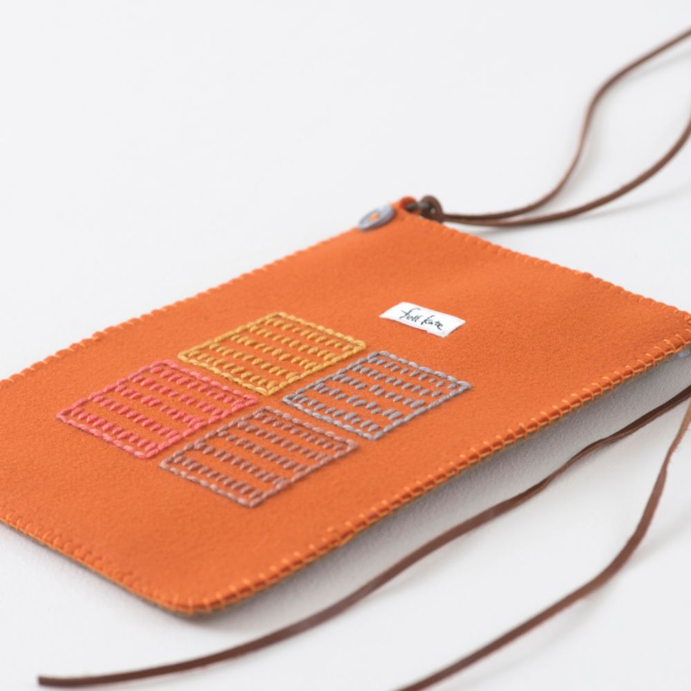 毛糸でザクザク刺しゅうをして、フェルトなので端の処理がいらず仕立ても簡単です。