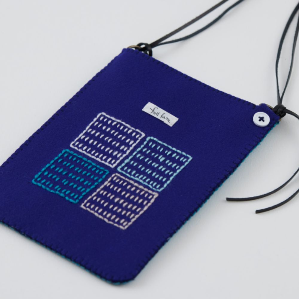 毛糸でザクザク刺しゅうをして、フェルトなので端の処理がいらず仕立ても簡単です。