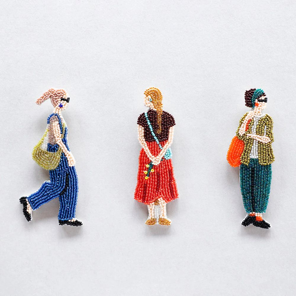 おでかけのワンシーンを切り取ったような、ビーズブローチです。