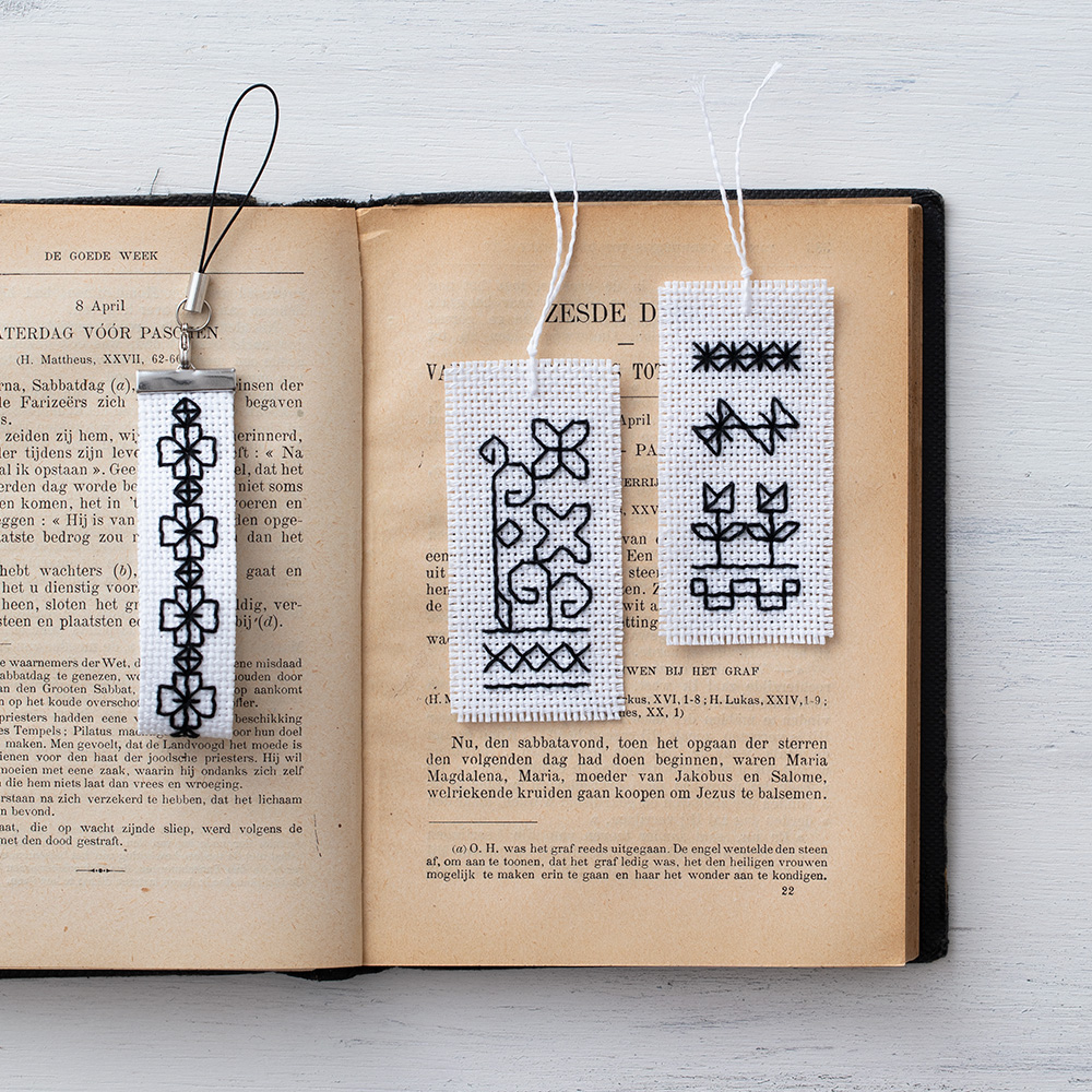 レッスン3のパターンを使ってアレンジの楽しみ方を学びます。異なる太さの糸で立体感を出し、パターンを部分的に変えてみましょう。今回から布は織り目の細かい25カウントの麻になります。