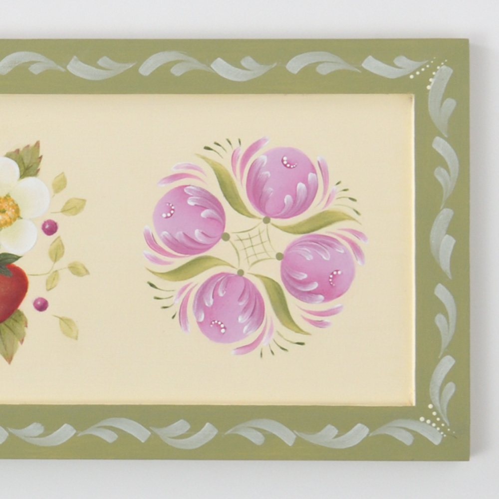 トールペイントの基本ともいえる、型のある筆づかい「ストローク」をピックアップした講座です。前半の「ストローク図鑑」は、代表的なストロークの名称と描き方が紹介されていて、テキストやインデックスとしても好適。後半は、ストロークを組み合わせた実践編。スリムなフレームにヨーロッパ刺しゅうでも見かける伝統的な花のパターンを描きながら、ストロークのレッスンをしていきます。『ペイントクラフトデザインズvol.23』64ページ掲載