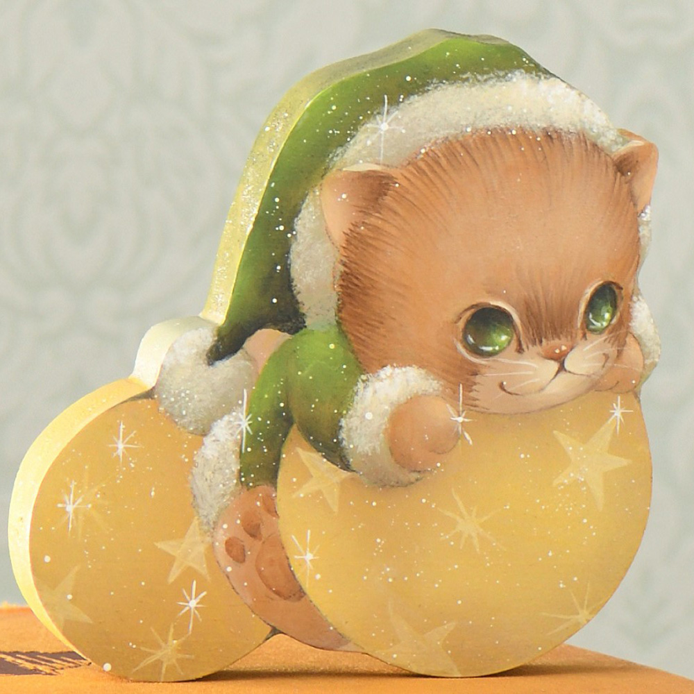 クリスマスのお楽しみに2匹の子猫が瞳を輝かせる、かわいらしいカットアウトのセット。素材は1枚板を使用。しっかりと厚みがあり、自立します。監修:瀬戸山桂子