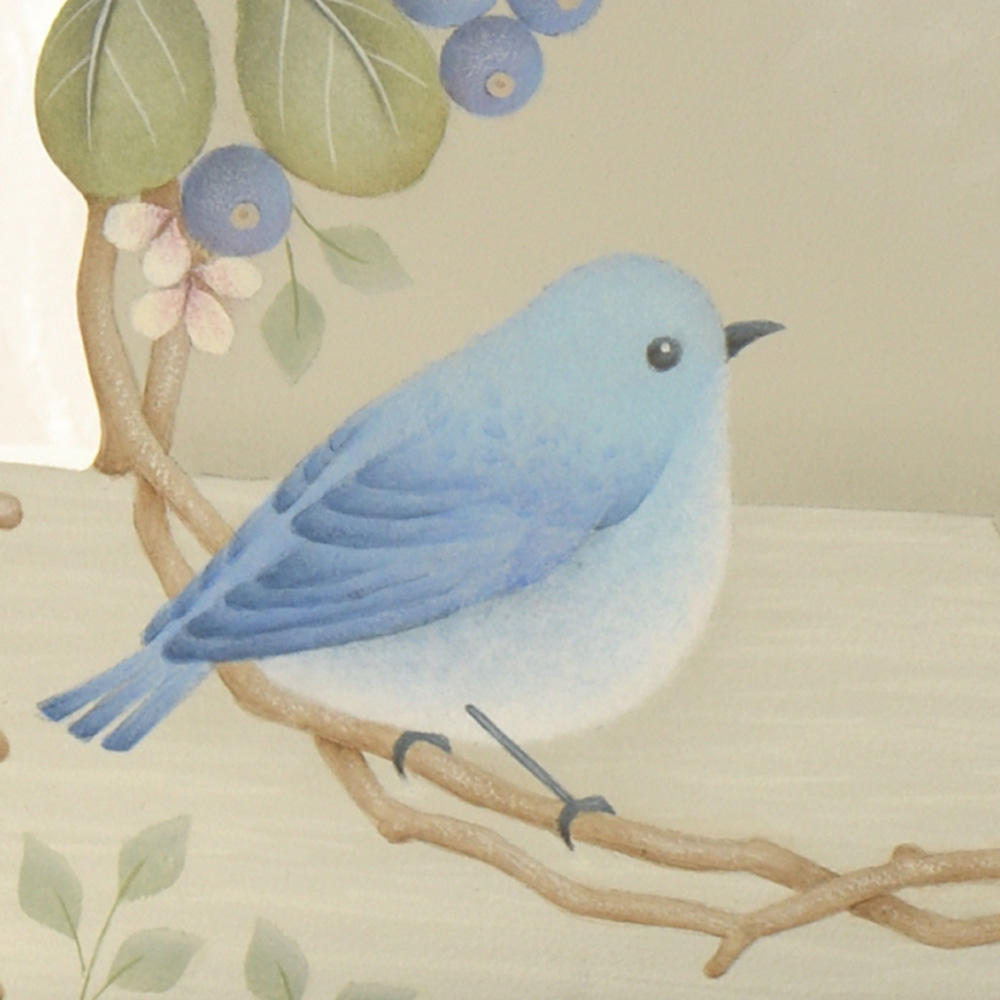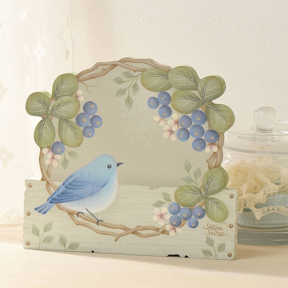 鳥モチーフも大好評の白井里美さんによる、ふんわりとした青い鳥(マウンテンブルーバード)を描く講座。合わせた丸葉車輪梅のリースも、青い鳥にぴったり♪ ブルー系のさわやかな印象の作品となっています。