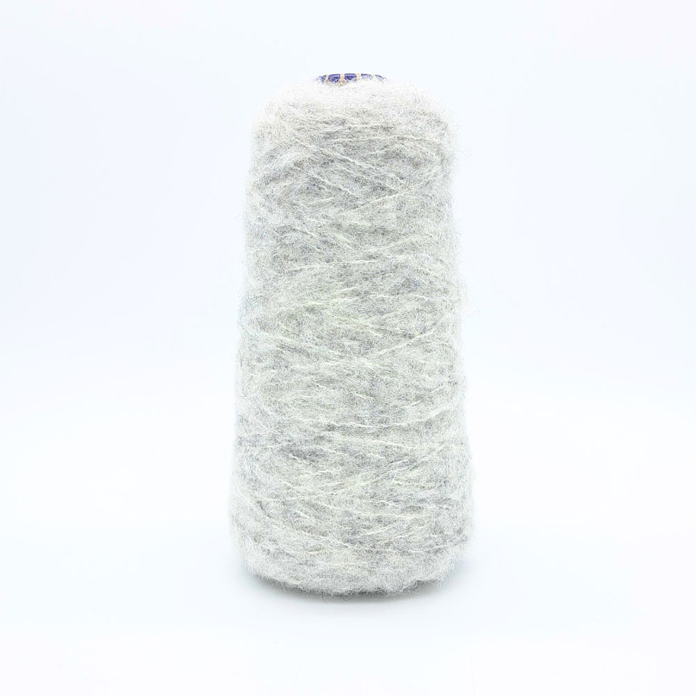 極細ループヤーンを引き揃え、起毛させて仕上げたふわっふわのアルパカの糸。混色してつくったカラーは、メリヤスや地模様などのシンプルな編地にニュアンスを与えてくれます。
