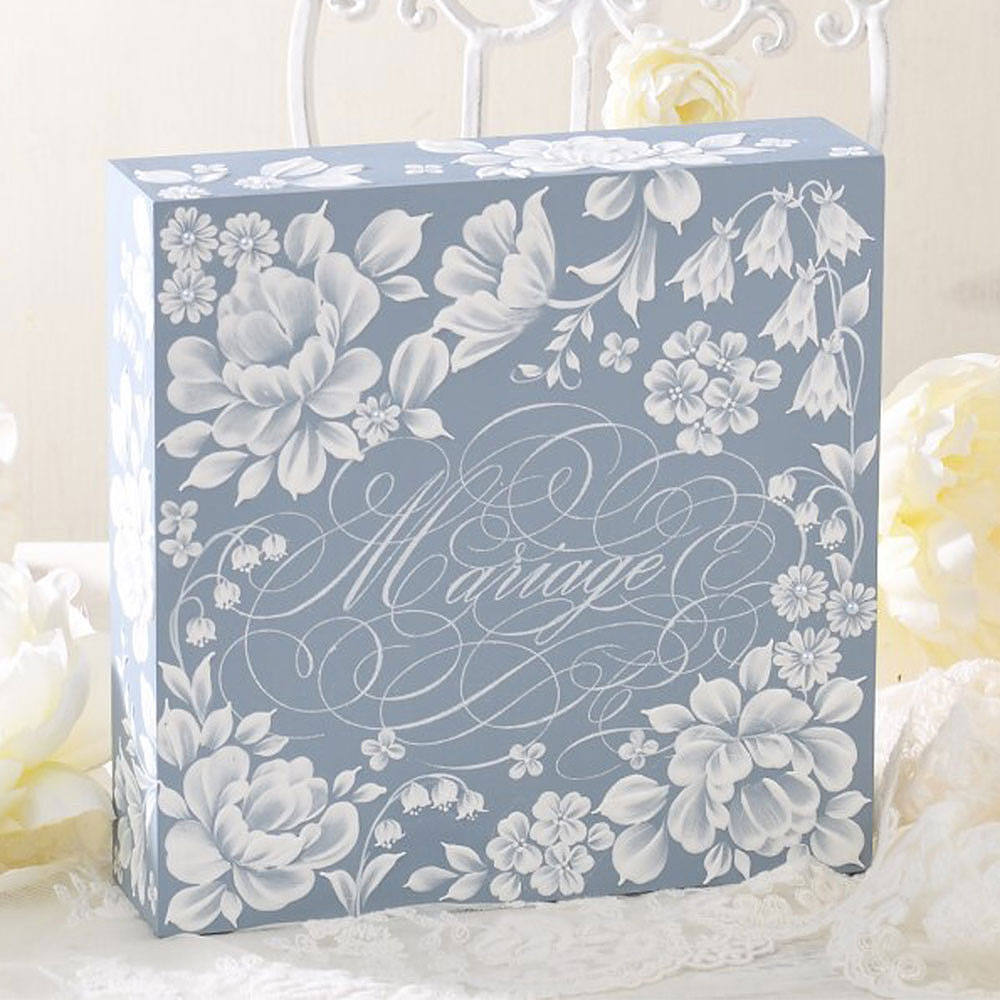 素材は、大げさではなく存在感のある正方形のボックス型のボード。サイドにも絵柄を入れるので、斜めから見てもきれいで小ぶりながらゴージャスです。 ※シルクスクリーンは含まれません。 『ペイントクラフトデザインズvol.23』65ページ掲載 監修:川島詠子