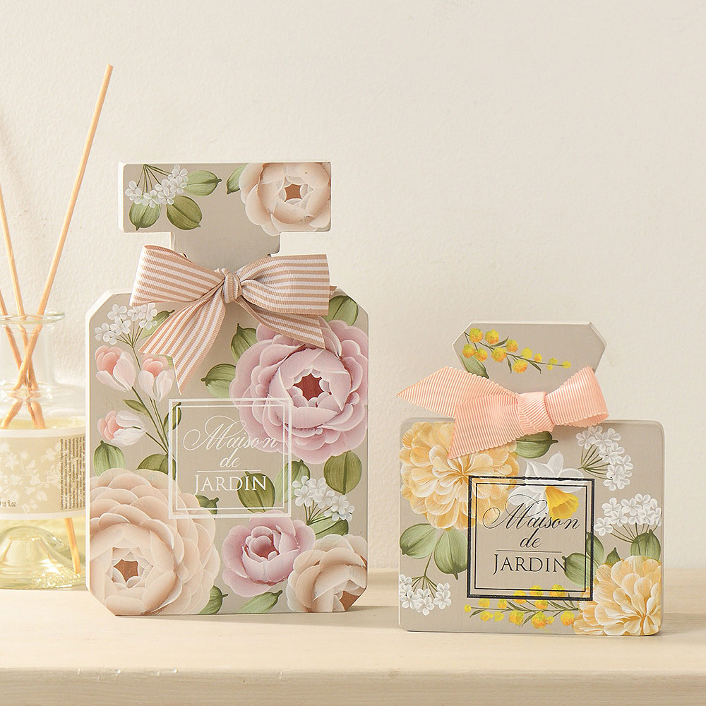 ピンク系に、イエロー系…。かわいい春の花たちを、パフュームボトルに詰め込んだ作品。仕上げにリボンを結んで、おしゃれなボトルにドレスアップさせましょう。監修:川島詠子