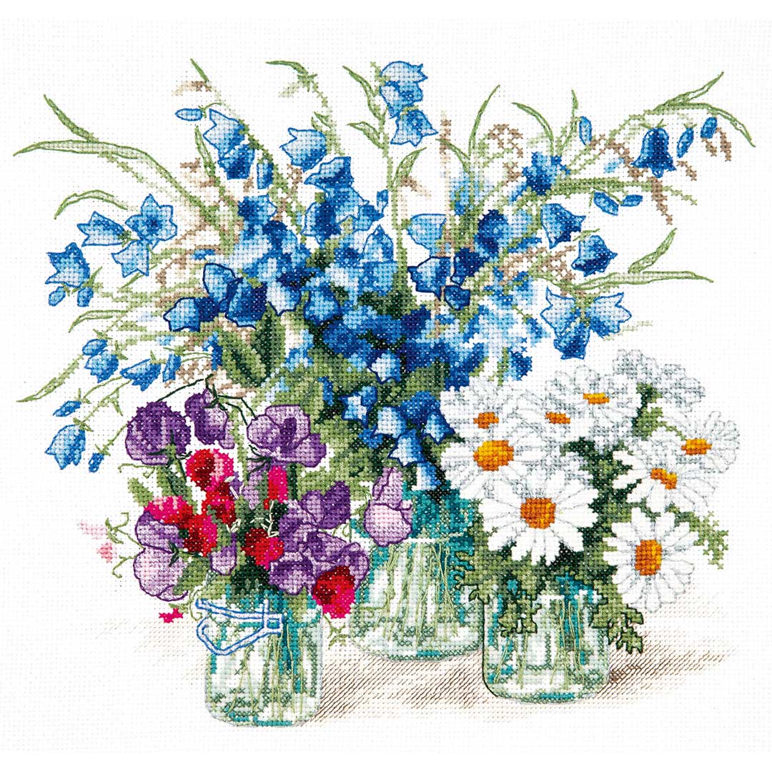【キット作り方つき】庭で摘んだ新鮮な花を活けて、そのままクロスステッチ作品に。香りまで漂ってきそうです。中級の方へ。