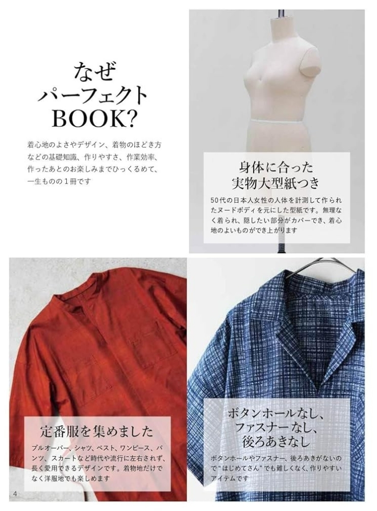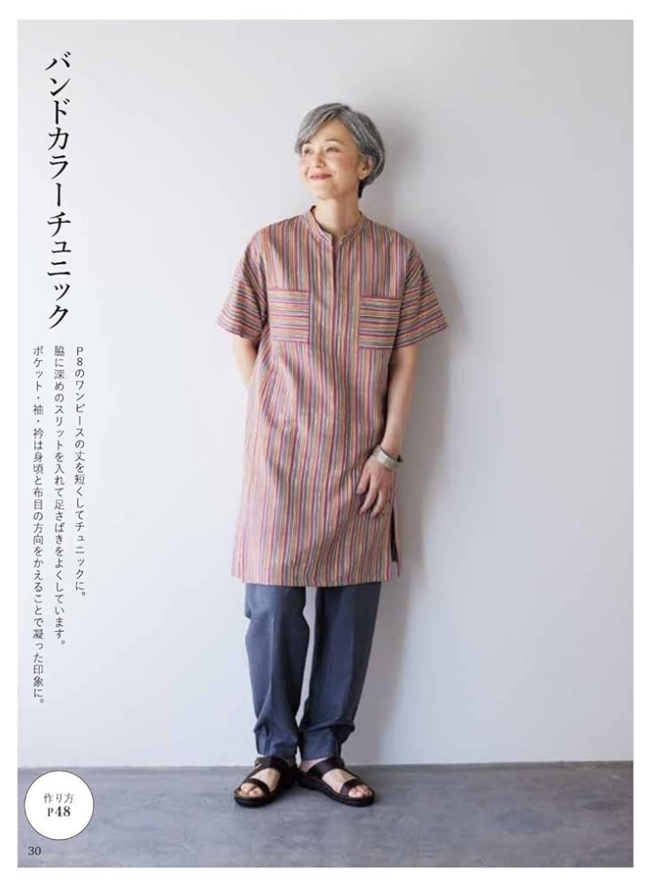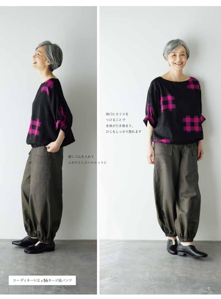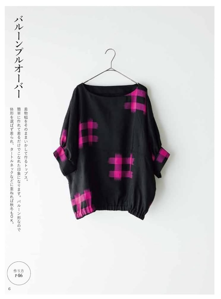 50代以降の女性の体型を元に作られた、着心地よし、デザインよしの実物大型紙で、着物リメイクを楽しむ1冊。着物のほどき方から扱い方などくわしく丁寧に解説をしているので、着物リメイクがはじめての方でもきっと楽しめます。型紙はすべて着物幅で収まるように考えられているため、型紙を作ったら置いて裁つだけ。また、縫い合わせる位置も考えられており、縫ったはぎ目がデザインポイントになるようになっています。ボタンホールなし、ファスナーなし、後ろあきなし、の3ナシ仕上げ。商用利用OKなので作った洋服を販売することも可能。S・M・L・LL(一部フリーサイズ)の実物大型紙つきです。