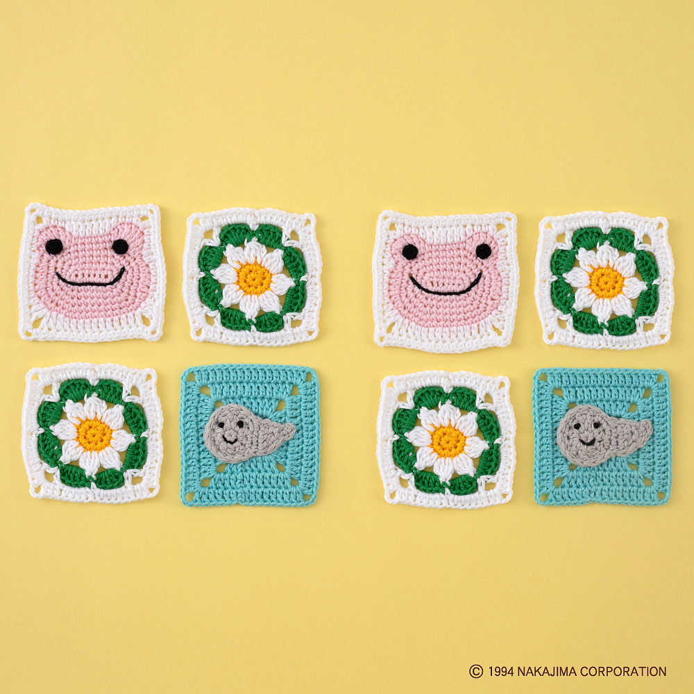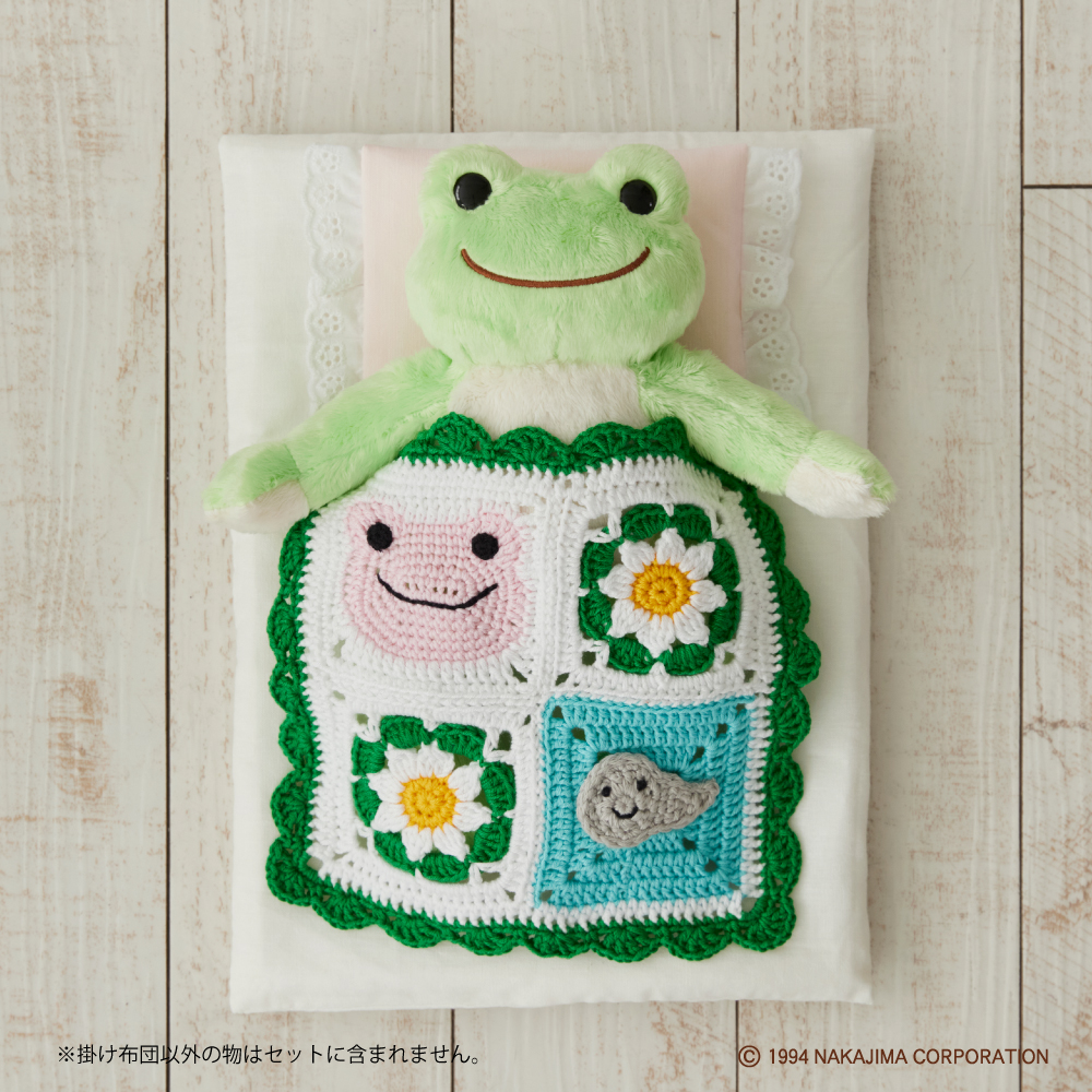 さらに、編んだモチーフを使って、かえるのピクルス用の掛け布団が作れます♪
