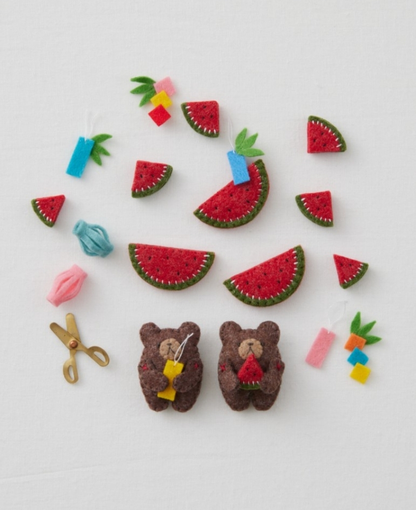 Instagramフォロワー数5.5万人「まつぼっくり。」さんが手芸用シートフェルトで作る小さなマスコット。お正月、ひな祭り、海水浴、ハロウィン、クリスマスなど季節の行事をくまとうさぎが案内。うさぎの詳しい作り方つき。