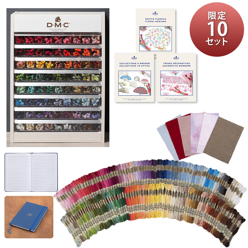 【限定10セット】 フランスの老舗刺しゅうメーカー・DMCより、刺しゅうファンにおすすめの限定福袋をご用意しました。商品総額はなんと税込137,000円相当‼刺しゅう糸の収納に便利なマルチディスプレイや、マルチに使える25番刺しゅう糸全500色と、クロスステッチ用クロスのアソート10枚セット、クロスステッチ図案集3冊、日本で未発売のDMCオリジナルノートも入っているお得なセットです。