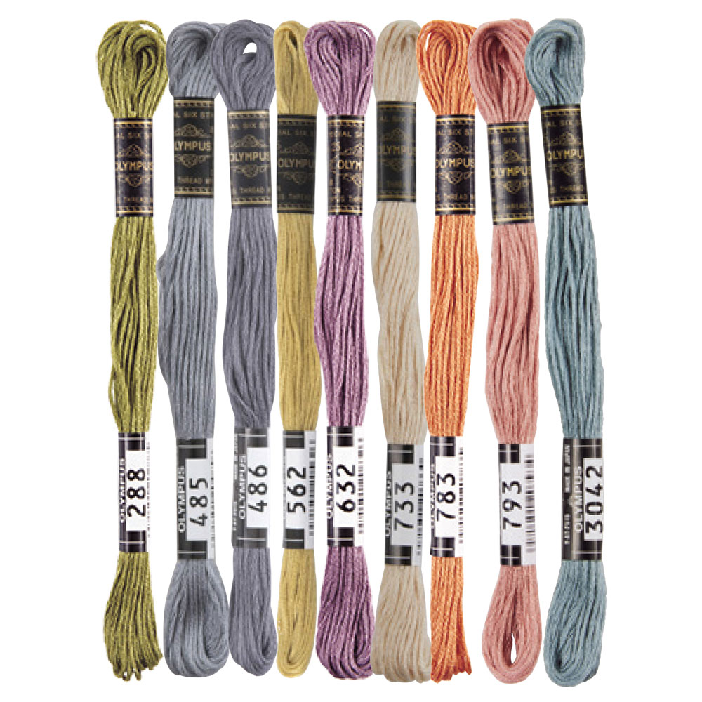 ステッチイデーvol.47 19ページに掲載の作品に使用した、オリムパス25番刺しゅう糸のセットです。