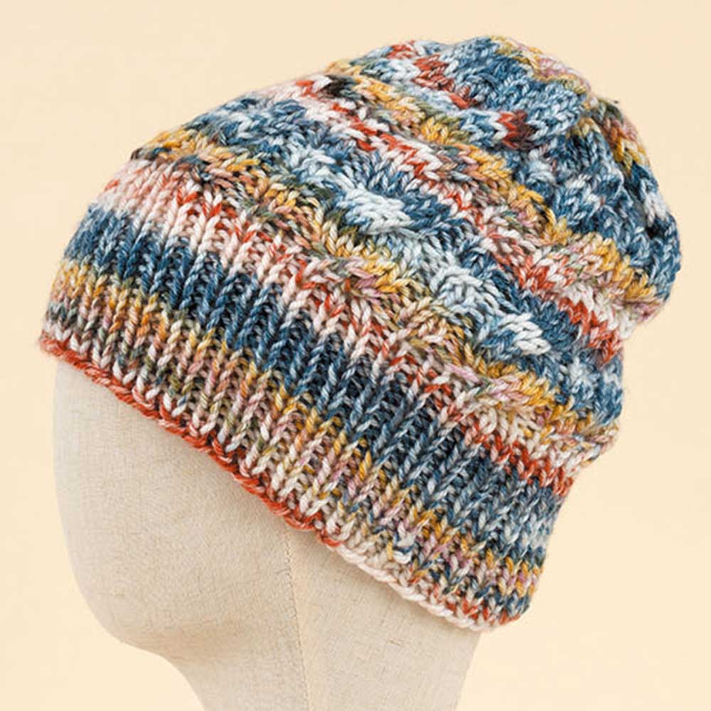 【キット作り方つき】極太タイプでザクザクとテンポよく楽しく編める、カジュアルな色合いが魅力の帽子です。自然なグラデーションが、シンプルな編み地も表情豊かにし、着こなしに程よいアクセントを添えてくれます。なわ編み模様がデザインのポイントになっており、トレンドに左右されず長く愛用できます。中級。
