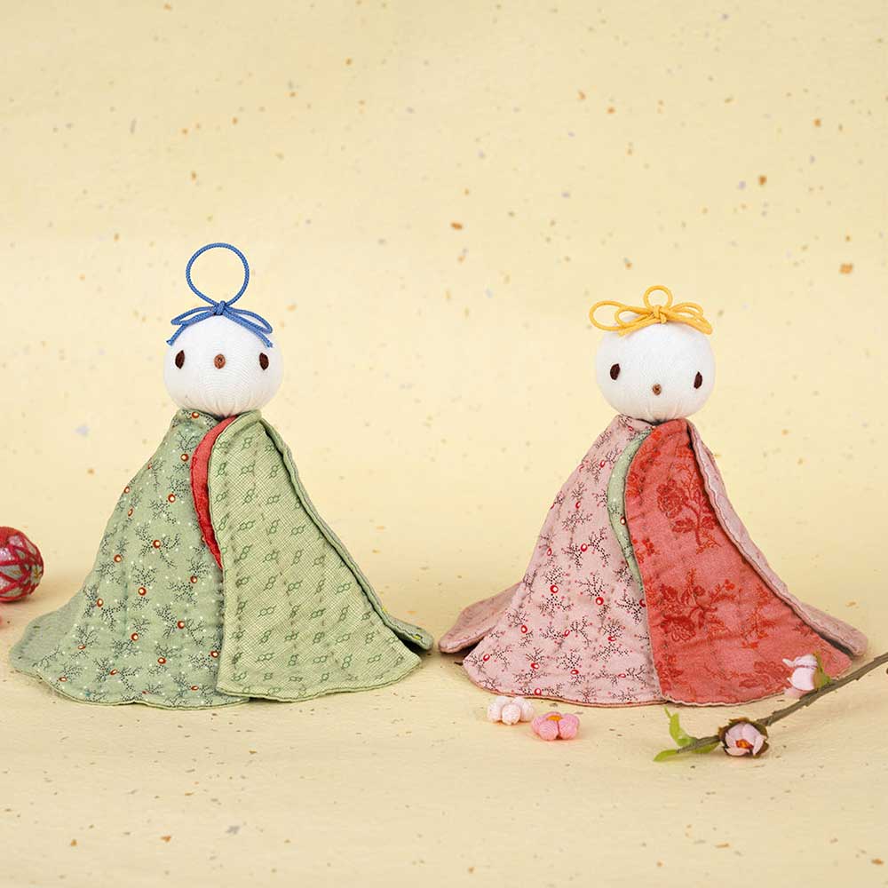 【キット作り方つき】ふんわり咲き始めの花をイメージした着物をまとう、初節句にもぴったりの立ちびなです。顔は刺しゅう糸でシンプルに仕上げます。