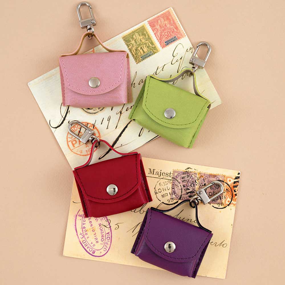 【完成品】小銭や鍵・薬などを入れられる、人気の手のひらサイズバッグ。カニカンで好きな物につけられます。パステル調とシック系、各2色ずつのセットを2種ご用意しました。